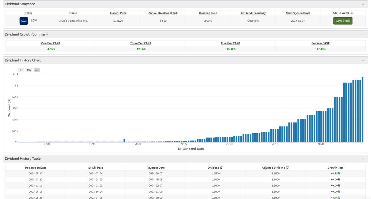 Dividend Snapshot - LOW Stock